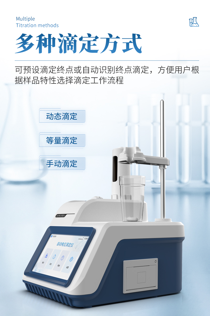 4、支持动态滴定、等量滴定、手动滴定的滴定方式,可预设滴定终点或自动识别终点滴定,方便用户根据样品特性选择**滴定工作流程;