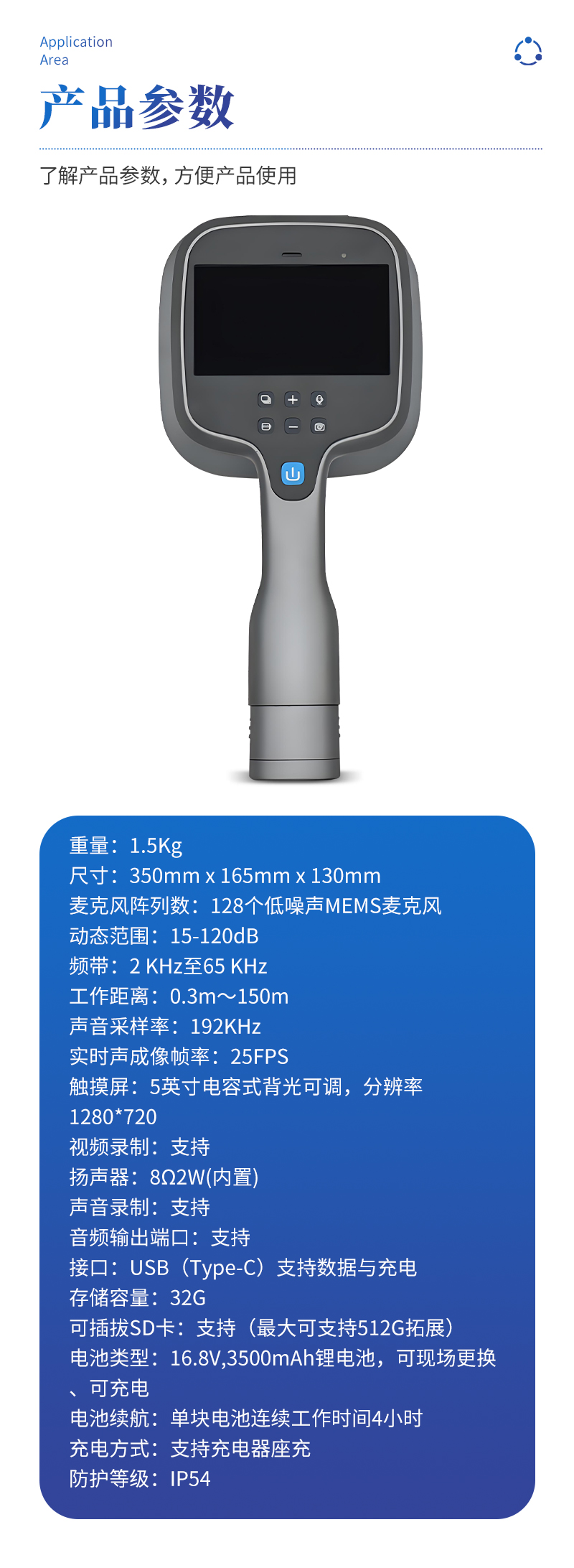 | 麦克风阵列数 | 128个低噪声MEMS麦克风 |